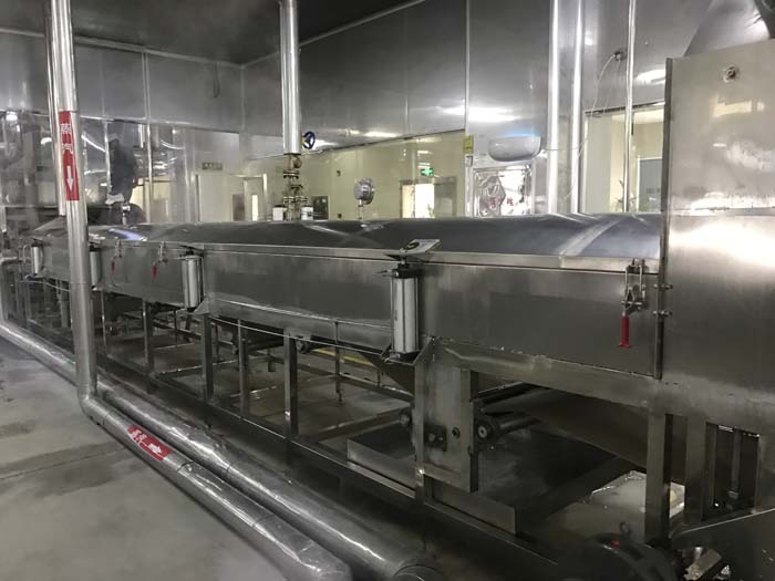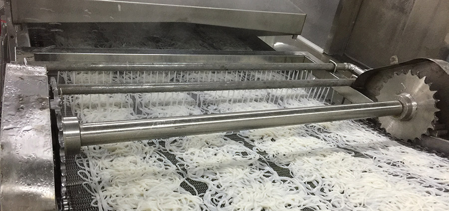 為了延長(cháng)鮮米粉的保質(zhì)期,包裝好的米粉需要進(jìn)行巴氏滅菌。 通過(guò)蒸汽完成最后的殺菌后進(jìn)入到冷卻。
